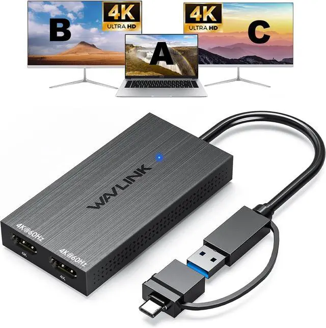 Dual 4K@60Hz Output This USB to HDMI adapter for monitor works seamlessly via USB-C/USB-A perfect for Mac M1/M2/M3 users handling HD video calls data analysis or presentations. Not for gaming/HDCP apps like NetflixExpand Your Workspace Use this USBC to HDMI adapter to mirror or extend screens quickly ideal for coding multitasking across apps like Excel and ZoomUniversal Dual HDMI Adapter The ultimate USB to dual HDMI adapter for 2 monitors! Compatible with Thunderbolt 3/4 USB4 and legacy USB 2.0 ports. Transform any laptop into efficient productivity with USB HDMI adapterEnterprise-Level Security Protect sensitive data with WAVLINKs encrypted DL-chip technology.