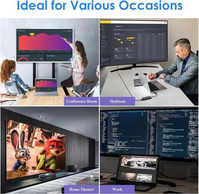 Trusted for corporate USB A to HDMI dual monitor adapter setups ensuring secure connections office environmentsPlug & Play Flexibility This HDMI splitter extended display for dual monitors works with Windows 7-11 macOS 10.14 + ChromeOS and Android. Driver requiredNo Linux/Unix/iPad/iOS supportWhats Included 1x USB 3.0 /USB C to HDMI adapter 1x guide. Comes with 12-month coverage (+6 months for registrations) and ongoing technical assistance