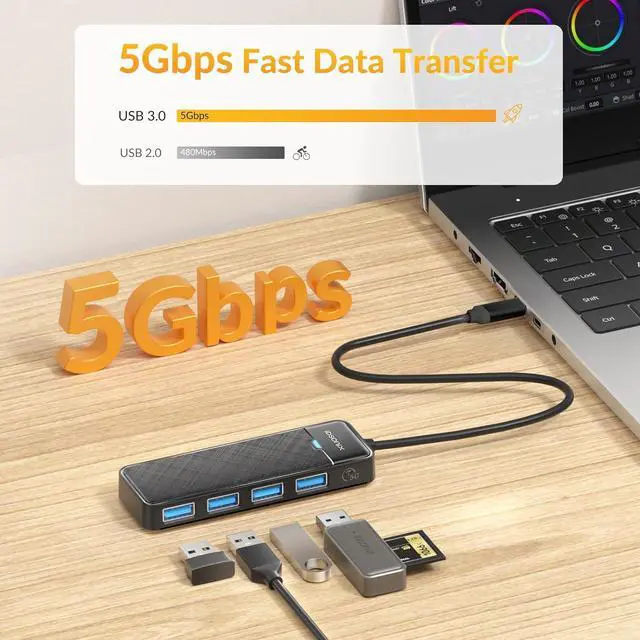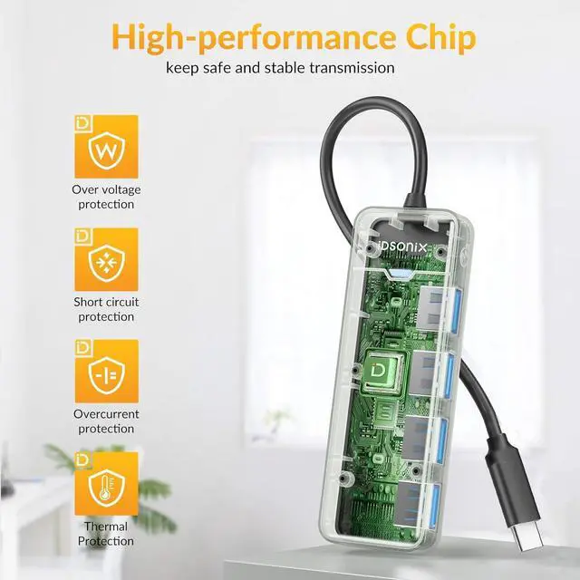 (Note: This USB hub dose not support for charging! )Ultra Speed 5Gbps Data TransferThis 4-Port USB C Hub 3.0 hub can reach up to 5Gbps data transmission which is more than 10 times faster than USB 2.0. Its also backward compatible with USB 2.0 or 1.1 devices. 1G files can transfer in seconds. Safe & Stable The 4-port USB C Hub 3.0 is quipped with a high-quality main control chip which can keep stable and efficient data transmission. Also providing over-current protection over-voltage protection and overheating protection to ensure safety for your drivers and valuable data. Easy to UseThe iDsonix USB hub 3.0 adapter is made of lightweight ABS plastic small and compact portable for travelling and carry. No drivers needed plug and play support hot swapping. Perfect for your office work. Wide CompatibilityUSB C 3.0 hub is compatible with Windows/Mac OS /Linux and other systems.