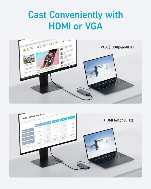 Seamless 4K Dual-Display: With support for 4K output via HDMI and the flexibility of VGA manage single or double screens effortlessly optimizing productivity.