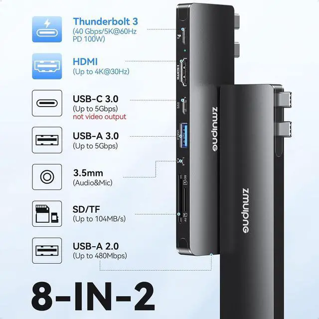 USB Adapter: This mac usb c adapter specially designed for 13'' 15'' 16'' inch MacBook Pro 2024/2023/2022/2020/2019/2018/2017/2016 MacBook Air 2025/2024/2023/2022/2020/2019/2018/2017/2016; With this macbook pro adapter you can easily fulfill your daily use by extending two USB C port to 4K HDMI Thunderbolt 3 port USB C port 2*USB 3.0 USB 2 SD/Micro SD card readers.