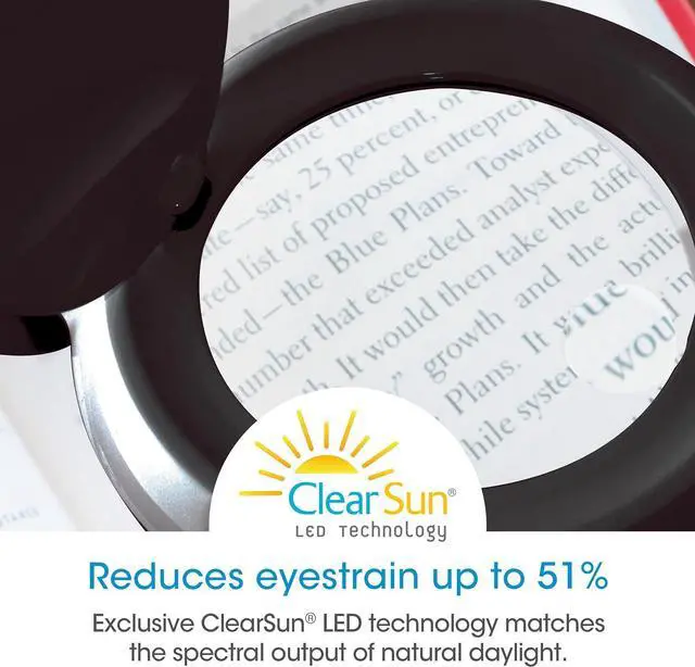 CLEAR, BALANCED ILLUMINATION: Enjoy up to 360 lumens of consistent Natural Daylight LEDs, built to enhance visibility and reduce harsh glare when using the magnifying glass with light and stand.