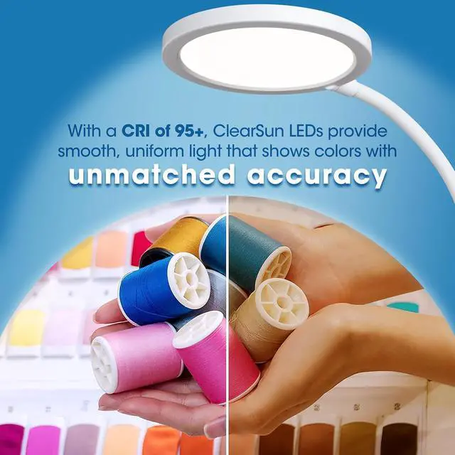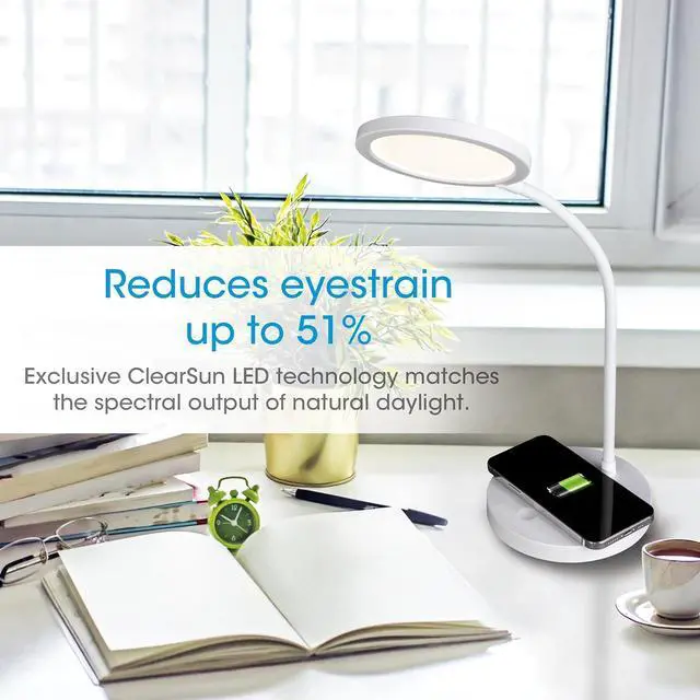 DESIGNED TO MINIMIZE EYE STRAIN: Your eyes perform best in balanced, natural light, which is why OttLites exclusive ClearSun LED technology is designed to match the spectrum of the sun, reducing eyestrain up to 51%. ClearSun LEDs have a 95+ Color Rendering Index (CRI), a measurement that reveals how accurately a light shows color on a scale of 1-100. Other lamps average a CRI of 83. This makes for a great option for a desk lamp for college dorm room or office.