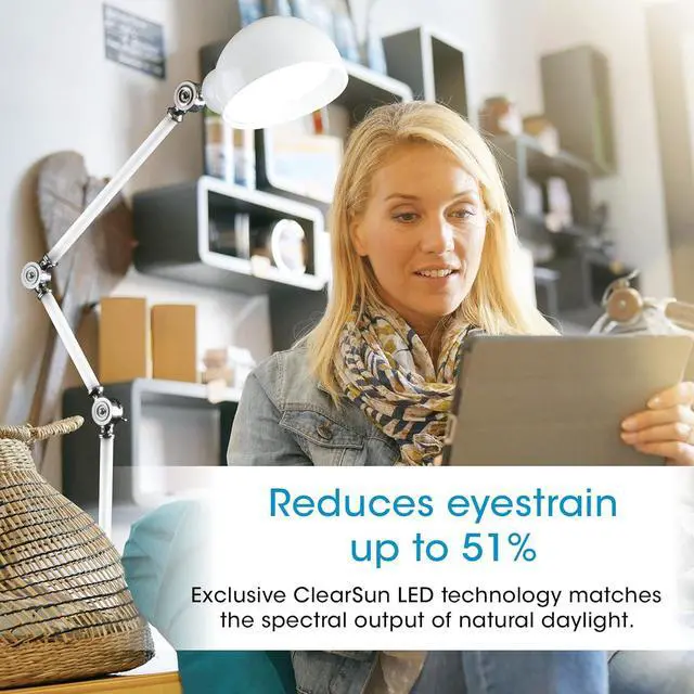 Designed with Eye Health in Mind: Your eyes perform best in balanced, natural light, which is why OttLites exclusive ClearSun LED technology is designed to match the spectrum of the sun, reducing eyestrain up to 51%. ClearSun LEDs have a 95+ Color Rendering Index (CRI), a measurement that reveals how accurately a light shows color on a scale of 1-100. Other lamps average a CRI of 83.