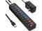 Powered USB 3.0 hub, 11-Port USB Hub Splitter Extension 7 USB 3.0 Data Ports + 4 Smart Charging Ports with Individual LED On/Off Switches and 12V/3A Power Adapter for USB Devices.