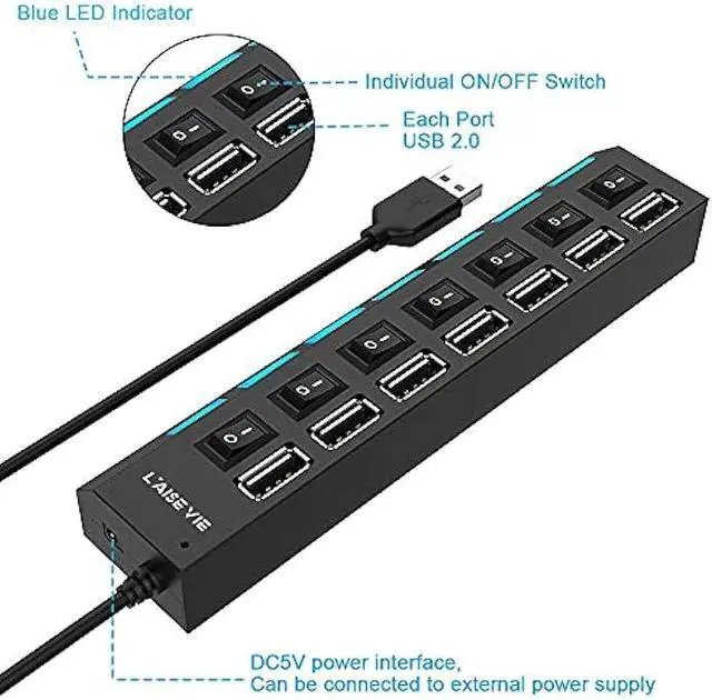 [480Mbps Data Transfer Speed] Each port is equipped with USB 2.0 technology, capable of transferring data at speeds of up to 480Mbps fast enough to transfer HD movies in seconds. Full-Speed (12Mbps), And Low-Speed ( 1.5M bps).