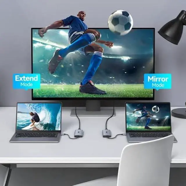 [@ ] Mirror or extend your screen with the HDMI port to HD TV, monitor or projector. Support 4K@60Hz (down compatible with 2K@60Hz, 1080p, 1080i, 720p, 480p, ONLY when your devices support 4K resolution, the video output will be 4K. )