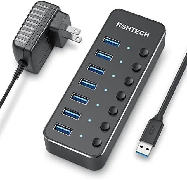 USB Port Hub Expander: RSHTECH USB 3.0 hub instantly adds 7 USB 3.0 ports extension to your notebook, desktop, smart TV or gaming host, for hard drives, camera, mice, keyboards, flash drives, card readers, printer, USB fan, and more USB devices