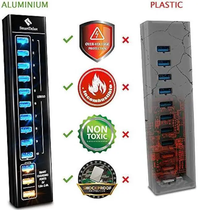 PROFESSIONAL PROTECTION - heavy duty USB Hub is made of study, scratch-resistant aluminum alloy; USB data Hub has a build-in surge protection to keep devices safe from voltage spikes damage