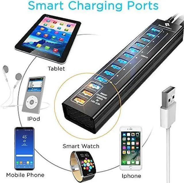 3 USB FAST CHARGING PORTS of the powered USB charging Hub provide up to 2.4A each and offer you to charge multiple devices at once even when all USB ports are in use