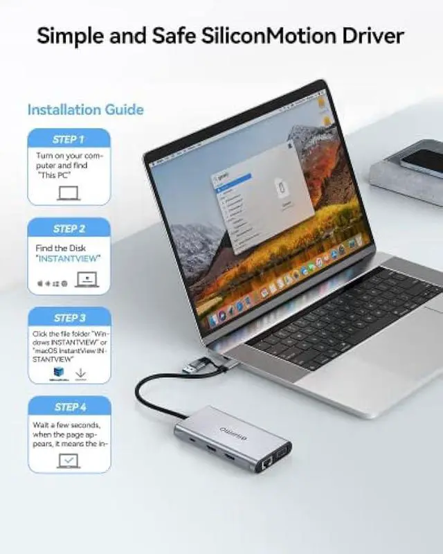 Quality Guaranteed: Before using USB Docking Station, You just need to click the pop-up Siliconmotion driver to use it directly make sure that the program is running when you use Docking Station. We sincerely provide 24-hours service. If you have any issues before or after the order, please do not hesitate to contact us for a pleasant solution.
