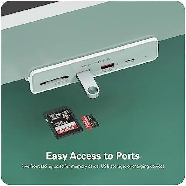 [High-Resolution 4K60Hz HDMI]Experience crystal clear 4K 60Hz HDMI video on compatible 4K monitors for brilliant high-resolution display. The HDMI port is located in the back of the hub to hide away HDMI cords when connecting to an external monitor.