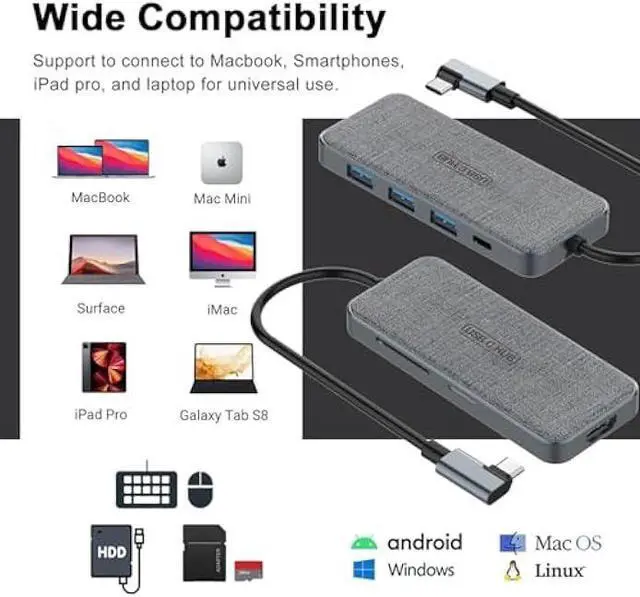 Fabric surface & Portable: the unique suede front personalized design makes the product more attractive and practical. It has northern European minimalist style. Compared with plastic materials, it feels better when held with one hand. Compared with metal materials, it has no cold feeling. The surface is wear-resistant and corrosion-resistant, which can prevent the surface from being scratched and is not easy to leave fingerprints. In addition, ZSIMC USB C Hub is compact and lightweight, allows you to expand your laptop's capabilities while on the go. No need for a drive, just plug and play.