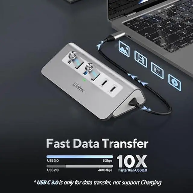 Must Read Before Buying: PD Port is only for charging, not support Data transfer. For a better experience, when you use the usb hub, please use at least 65W power supply to charge your laptop/phone via our usb c Hub. Doesn't unplug or plug the PD charger when using the powered usb c hub. This prevents the device from being disconnected, the HDMI connection screen is not displayed, and data transferred from external USB devices is lost.