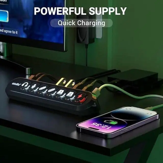 Powered USB Hub, atolla 7-Port USB 3.0 hub (6 Superspeed Transfer Ports+ 1 Fast Charging Port) with Swappable Illuminated Icon Switch and 12V/3A Power Adapter for Windows, MacOS, ChromeOS, Linux