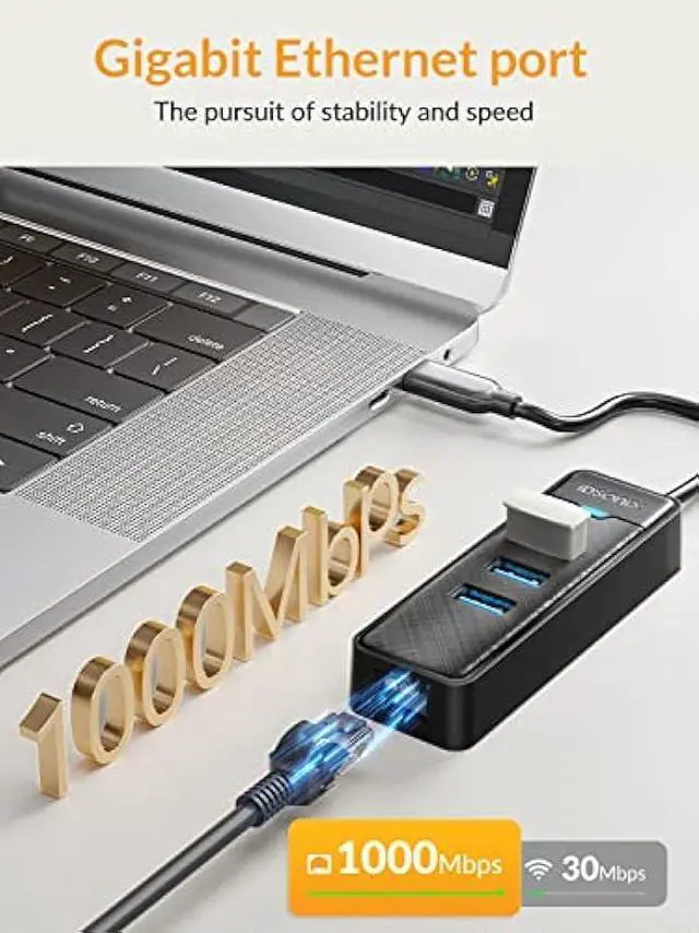 Plug and PlayNo need to install drivers, support hot swap. 3 USB 3.0 5Gbps ports and Gigabit Ethernet port speed provide a smooth network environment for users without Ethernet ports on MacBooks and laptops