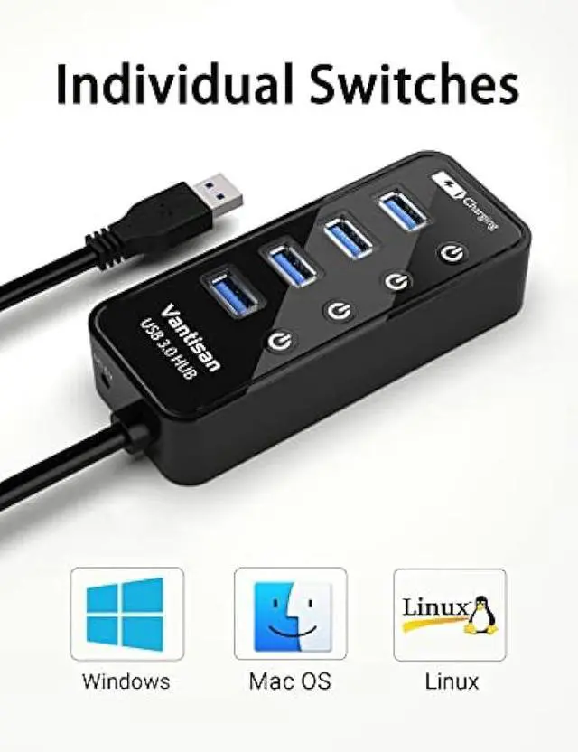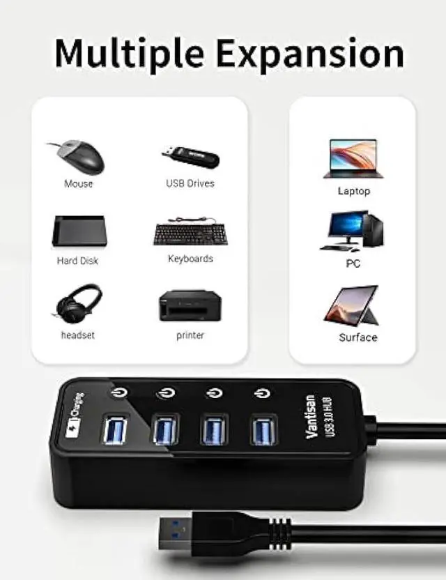 Easy Expansion: vantisan 4-port USB 3.0 HUB instantly expands your computer with 4 additional USB 3.0 port and widely compatible with keyboard, mouse, flash drive, card reader, printer and more USB peripherals