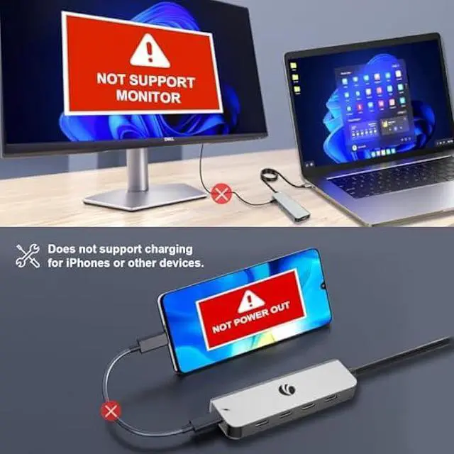 5 Port USB C Adapter VCOM USB C Hub has 4 USB C data ports and 100W usb c hub powered to meet your daily needs. usb c port expander can connect more TYPE-C Port devices to your laptop.
