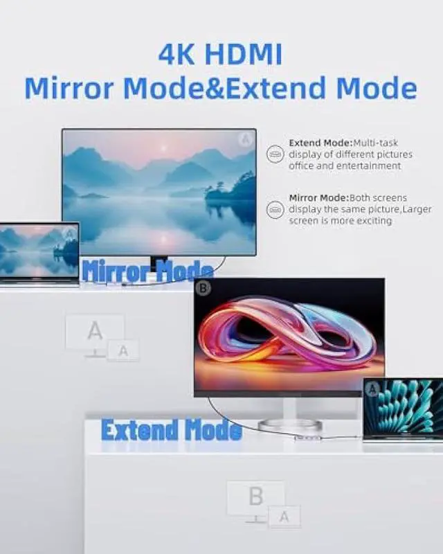 4K Hd resolution: This usb c dongle lets you mirror or expand the screen to monitor; projector or hdtv with hdmi port to stream video in up to 4k 30Hz (3840 x 2160) or Full Hd 1080P video output