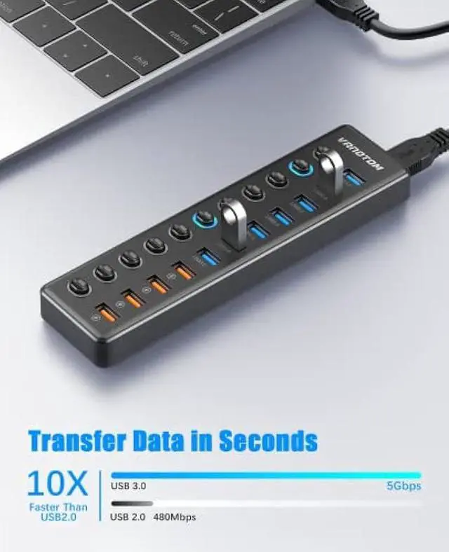 Superspeed Data Transfer: Sync data at fast speeds up to 5Gbps, this powered USB 3.0 hub can transfer large files and HD movies in seconds. Say goodbye to not having enough computer jacks and slow data transfers.