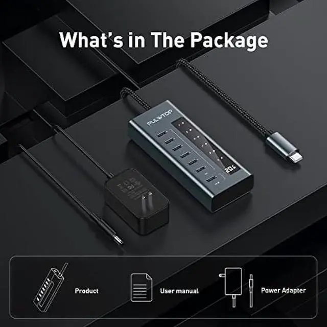 USB C HUB: PULWTOP 7 in 1 USB C TO USB C HUB includes 6 USB C 10Gbps data transmission ports and 1 x10Gbps USB C Data Transfer & Fast Charging Port, allowing you to easily backup files, transfer images, etc. from external devices with high transfer speed Up to 10Gbp.