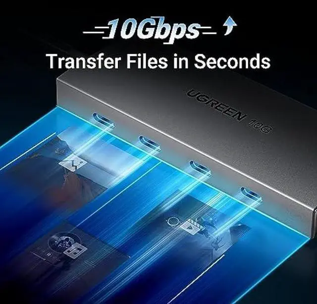 True 10 Gbps Speed: All four ports of the usb c splitter support USB 3.2 Gen 2 (10 Gbps) simultaneously when used with UASP-enabled SSDs or devices. Actual speed depends on host and cable specs.