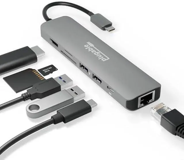 Expansion: Convert a single USB C or Thunderbolt port into a 7-in-1 USB-C hub featuring 2x USB 3.0 ports, 1x 4K HDMI, 1x Gigabit Ethernet port, 1x SD card reader, 1x microSD card slot, and 1x USB-C Power Delivery charging port