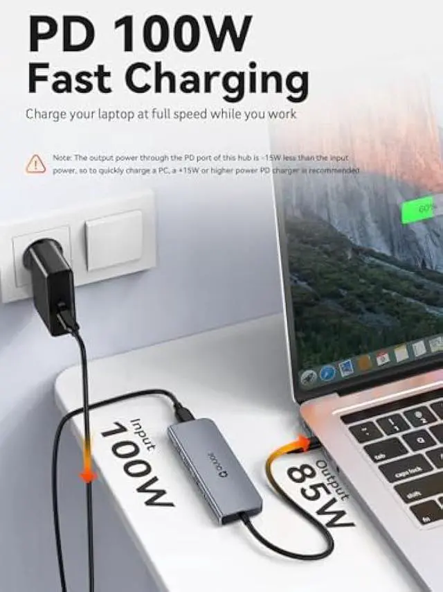 PD 100W Fast Charging: Not only does it provide 100W fast charging for MacBook, Surface Go, Dell XPS, HP Spectre, Lenovo Yoga, and other PCs via Power Delivery-enabled USB-C ports, it also ensures a stable connection. You can connect multiple devices at once without worrying about running out of power.