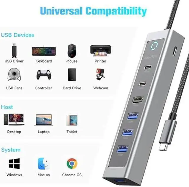 Wide Compatibility: USB-C Hub splitter is compatible with USB-C/USB 4.0 /Thunderbolt 3/4 devices. Such as MacBook Pro, MacBook Air, iMac, iPad, Surface Pro, Huawei Matebook, Dell, HP, Lenovo, etc. USB C hub multiport adapter is compatible with Windows, Mac OS, Linux Chrome OS, iPad OS, Android, and above operating systems, support OTG function