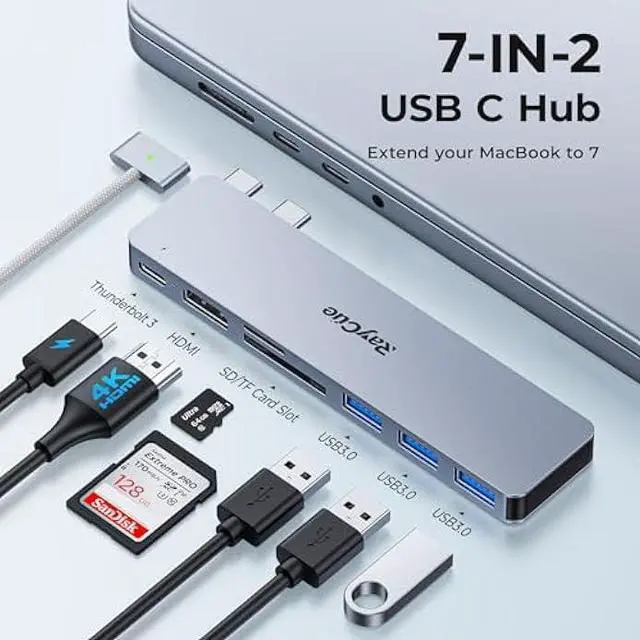 7 IN 2 Latest Upgrade Mac HDMI AdapterCustom designed for the latest MacBook Air and MacBook Pro, and is designed specially to avoid obstructing your MacBook's MagSafe port; USB C Adapter for MacBook Pro/Air 13''/14''/15''/16''2016-2023). Expand your MacBook into 1 HDMI port(4K@60Hz), 1 Thunderbolt 3/4 port, 3 USB-A 3.0 ports, 1 SD card slot, and 1 TF card slot the best companion of a MacBook laptop.