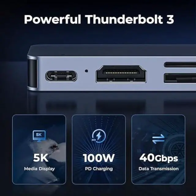 Multi-Function Thunderbolt 3HDMI adapter for Macbook Air with Thunderbolt 3 port that supports up to 5K Video Output, max 100W Power Delivery and 40 Gbps Data Transfer; Resolution up to 5K@60HZ Video Output, bring you a first-class realistic picture experience; Powerful up to 100W PD can provide stable charging for your MacBook Pro Laptop all the time; 40Gbps lighting speed data transfer can transfer hundreds of videos and photos within seconds.