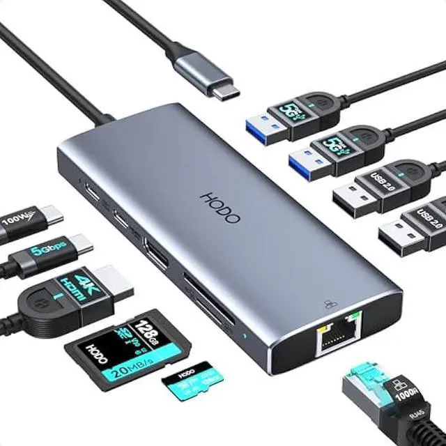 IN 1: With this usb c dock, you can easily fulfill your daily use by extending one USB C port to 4K HDMI, Gigabit Ethernet, 3*USB 3.0 ports, 2*USB 2.0 ports, USB C Power Charging Port (max 100W), USB C data transfer port (5Gbps), TF/Micro SD card reader. Compatible with MacBook, Dell, HP, Surface, Lenovo, ASUS, etc.