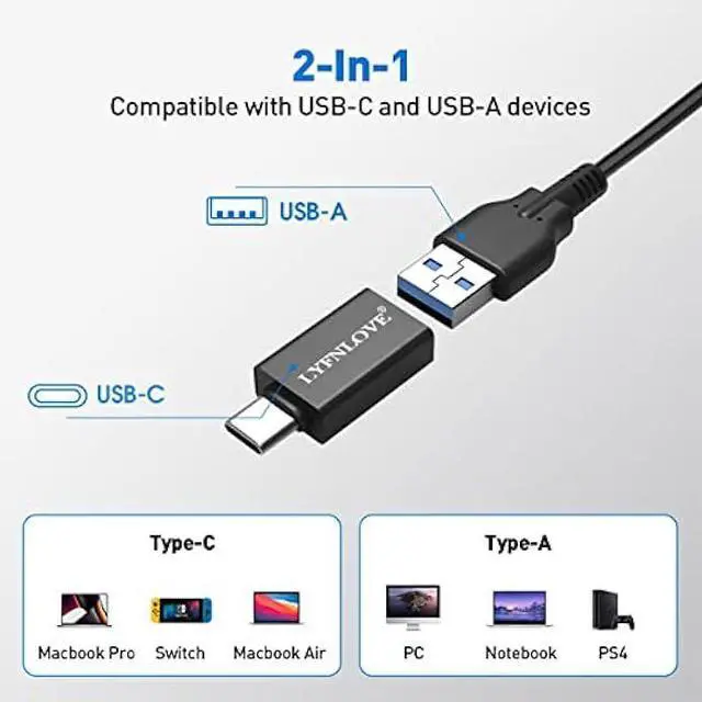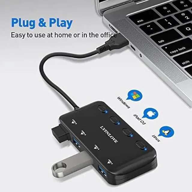 Hub: LYFNLOVE USB splitter extend 1 USB port to 4, let you connect multiple USB devices at same time, such as flash drive, keyboard, mouse, card reader, printer, camera, USB fan and USB cables.