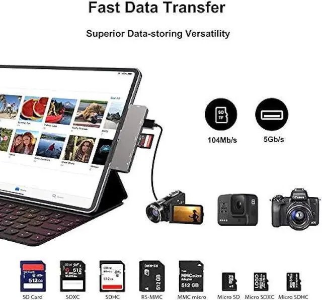 USB 3.0 port: you can connect USB flash drive, hard drive, keyboard, mouse and more USB devices and transfer data at super speeds of 5Gbps. Quickly access your image/video throught bulit-in SD/Micro SD card slot. Type-C 5Gbps Data port for transfer data via Type-C cable or flash drive.
