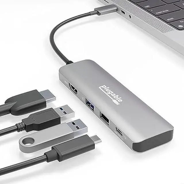 Ports: Compact 4-port USB hub with HDMI adapter for 4K monitor, 1x USB (10Gbps), 1x USB 2.0, 1x USB-C combo port with 100W Power Delivery and 10Gbps data transfer