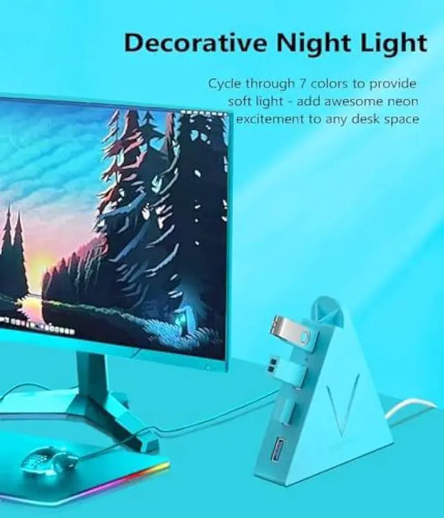 Uncompromised Visual: The unique Flying V design at the top and on the side provides an aesthetically pleasing profile and boundary-breaking visuals. Decorative V-shaped night light can continuously cycle through 7 colors to provides soft light and it manages to add awesome neon excitement to any desk space whether at home or in the workplace, allowing you to compliment your home or office decor.