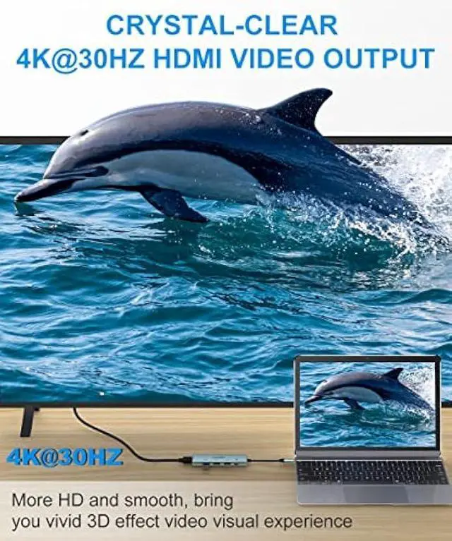 Thunderbolt 3 to HDMI Dongle: Advanced 30Hz HDMI Technology, mirror or expand the screen through the 30HZ HDMI video port to directly stream 3840 x 2160 video to HDTV, monitor or projector. You can enjoy better smooth, colors, sound, and details than 30HZ port. And support lower than 4K*2K@60HZ resolution.