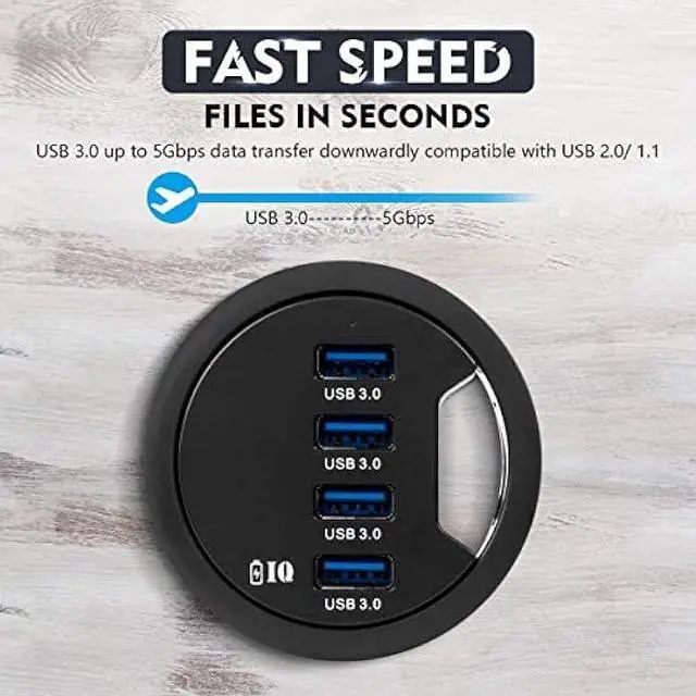DESKTOP ORGANIZERThis compact USB hub fit inside 2.36 hole on your desk, make full use of computer desk space, and solving the problem of desktop charging and transmission.