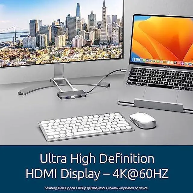 USB C Hub 4k 60Hz - Extend visual productivity with the crisp resolution, contrast, and color depth of Ultra HD (Single 4K @ 60Hz) via the HDMI video port