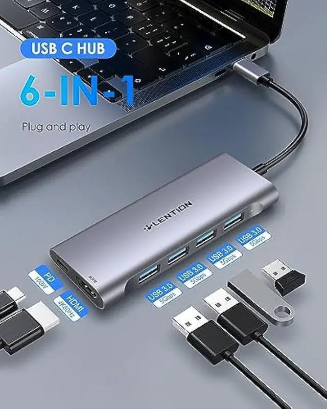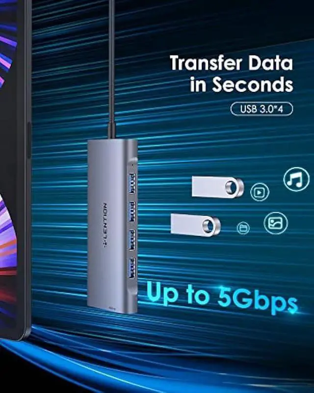 Ports: The LENTION C35 USB C hub multiport adapter can access to four USB accessories at the same time, feel free to connect wire keyboard, mouse, USB flash drive, hard disk, etc, with data transfer speed up to 5Gbps. (Not for Apple SuperDrive)