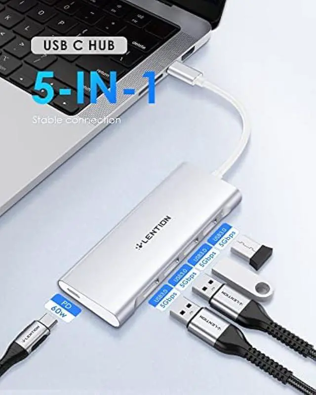 Mac-style Design: Unibody Aluminum Alloy, Ionized Finish and LED Indicator. EMI Protection prevents interference with wireless devices. The LENTION C31 USB C hub multiport adapter can save your desk space and expand your device's connectivity, it is a good choice for back to school supplies for college students, high school students, and teachers. It is also a good helper for your work. Lightweight and appropriate size to carry in your laptop bag when traveling and commuting