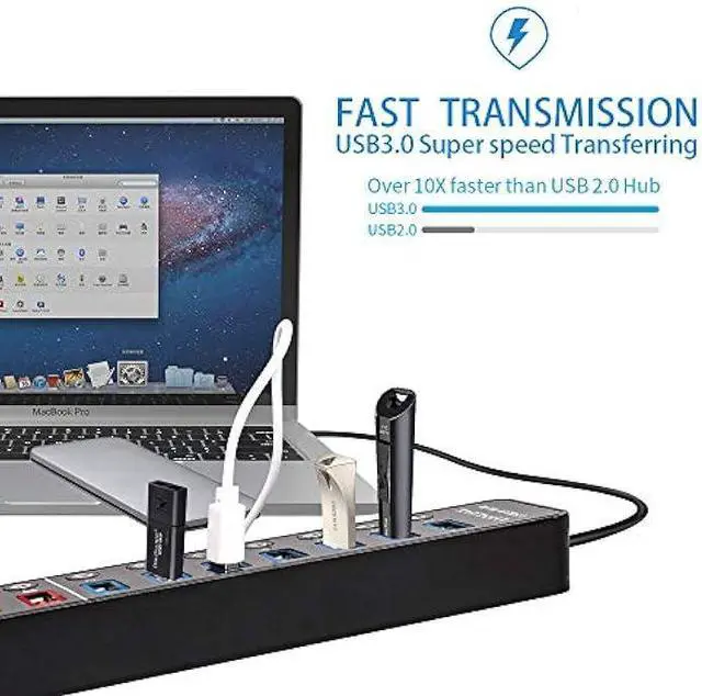 High Speed USB 3.0 Hub: Provides up to 5 Gbps data speed, get synced up in no time, backwards compatible with USB 2.0 / 1.1. Enjoy super speed data sync for your thumb drive, USB card reader, external hard drive, webcam, mp3 players, oculus, etc
