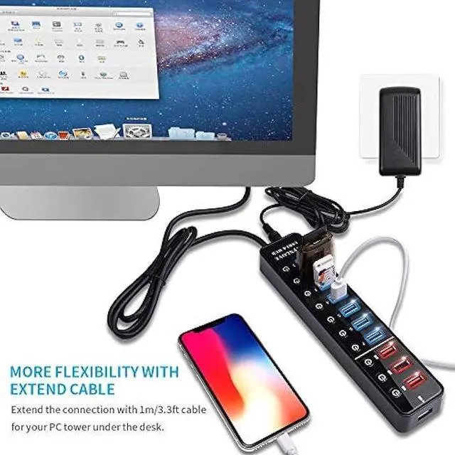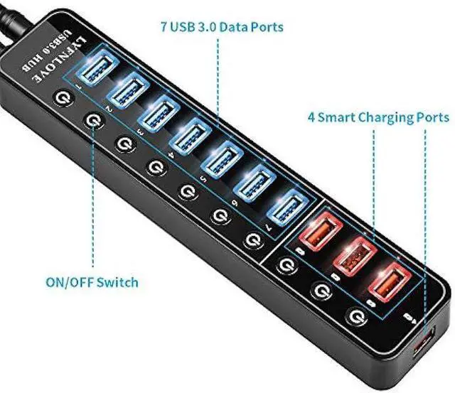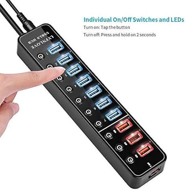 Individual On/Off Power Switches: Our USB port hub with power switch and LED indicator for each port, allowing to control each port independently, turn on/off the USB ports at your need. each switch remembers the on/off config