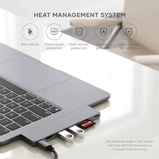 Device Safety - The aluminum hub efficiently dissipates heat and features a safety mechanism that activates above 40°C (104°F) or during high current/voltage, automatically shutting off for enhanced protection