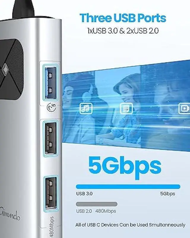 Super Speed Transfer: This usb type c hub has one USB 3.0 port with super speed data transfer up to 5 Gbps, 10x faster than USB 2.0 480 Mbps. Work with USB flash drive, camera, portable solid state drive, mouse, keyboard or any other USB-A 2.0 /USB-A 3.0 devices