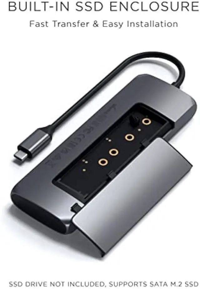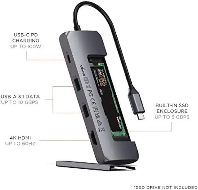 Built-In SSD Enclosure - Elevate your productivity with the USB C Hybrid Multiport Adapter, a multifunctional docking station featuring an integrated SSD enclosure. Easily expand your memory space, back up data, and transfer files at speeds up to 5Gbps, all without sacrificing an additional USB C port.