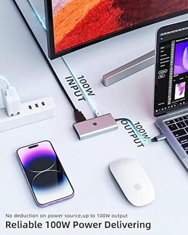 [Super Fast PD 3.0 Charging]: Tiergrade 4 in 1 USB C adapter equipped with the advanced PD 3.0 technology supports charging up to 100W while connecting multiple peripherals and provides at the same time intelligent power distribution as well as over-current protection.