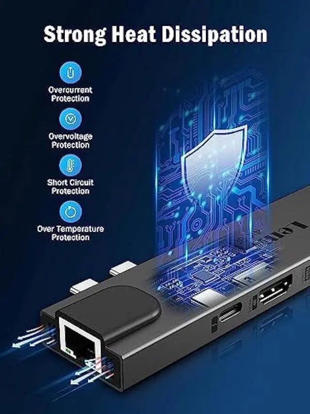 Plug-Play + Strong Heat Dissipation + Portable Size: Aluminum USB C docking station plug and play without drivers, settings or software. Built-in intelligent microchip and a variety of protection systems to prevent overcurrent, over-voltage, short circuit and high temperature, to ensure the security of file transfer and storage. Aluminum material dissipates heat better.
