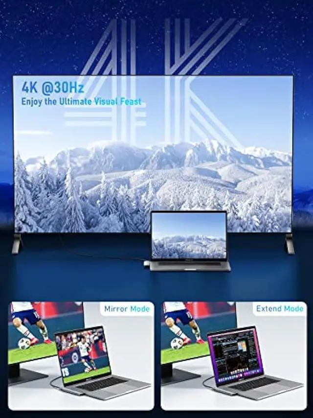 [Powerful HDMI Adapter for MacBook]: Use HDMI port to enter mirror mode for Mac OS or extended mode and transfer vivid 4K Ultra HD @30Hz or Full HD 1080p @60Hz video with 3D effect from laptop screen to monitor, projector, HDTV, etc. Stream movies, presentations or video games on your monitors with one click.