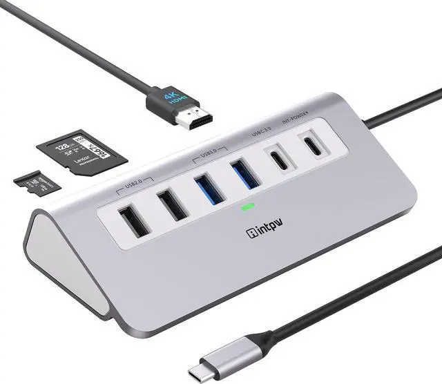 USB C Hub: USB 3.0 hub has perfectly combined all the functions you need. Intpw usb hub connect to your MacBook or Type C Laptops, featuring USB C charging port with 100W power delivery, 2 x USB A 3.0 Ports, 2 x USB A 2.0 Ports, 1 x USB C 3.0 Port for data, 1 x HDMI ports, SD/ MicroSD Card Reader. USB multiport adapter allows you to connect a keyboard, USB driver or external disk to your USB-C devices. USB-C Cable Length is about 19.7 " (50cm). Long enough to connect your laptop.